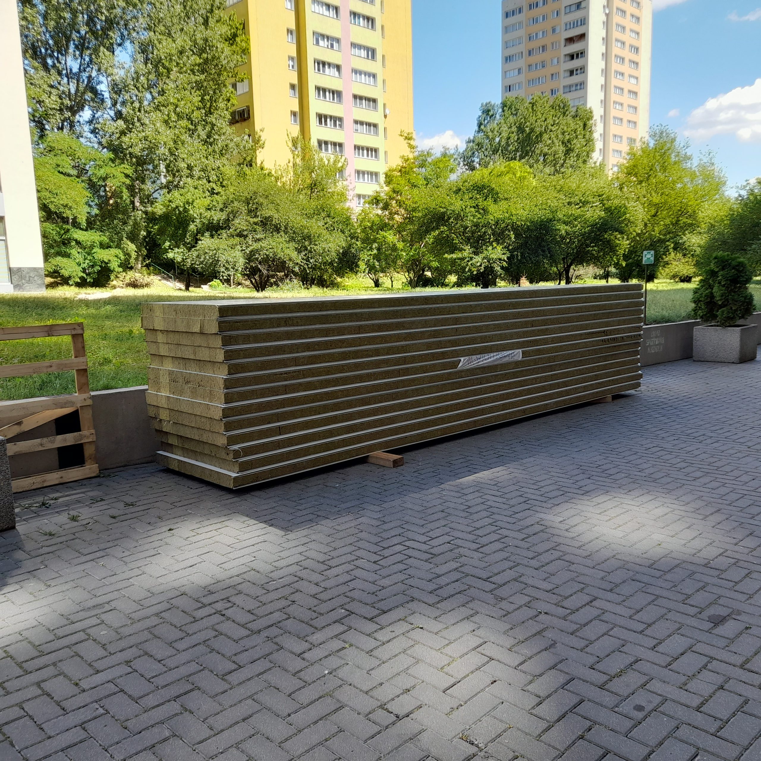 W dniu 27 lipca 2023 r. w godzinach 09:00 – 14:00 zaplanowano transport na dach patio 6-metrowych paneli, które będą służyć do zabudowy czerpni agregatów wody lodowej. Transport odbywać się będzie z wykorzystaniem specjalistycznego podnośnika o zasięgu 40 metrów z miejsc postojowych zewnętrznych numer 17-19. W związku z bezpieczeństwem prosimy o zachowanie szczególnej ostrożności w miejscu prowadzenia prac a zwłaszcza o nie poruszanie się w strefie pracy dźwigu. Prace zostaną wykonane w zależności od warunków atmosferycznych.